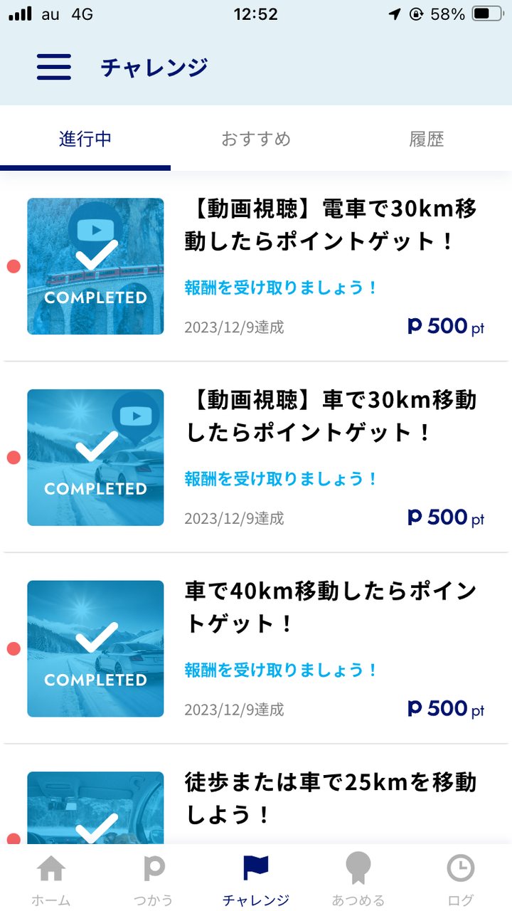 チェックインでポイントとかクーポンのチャレンジがあるやろ